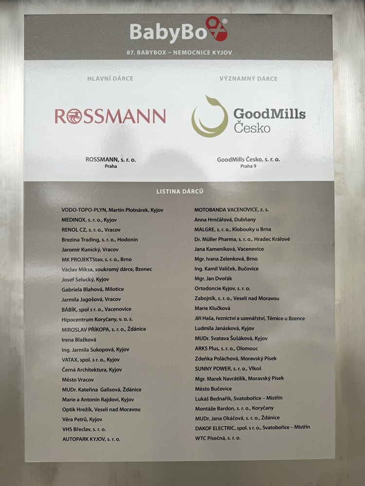 Již počtvrté jsme s radostí podpořili vybudování babyboxu - tentokrát v Kyjově. Slavnostní otevření proběhlo 5. prosince 2023 v areálu Nemocnice Kyjov.